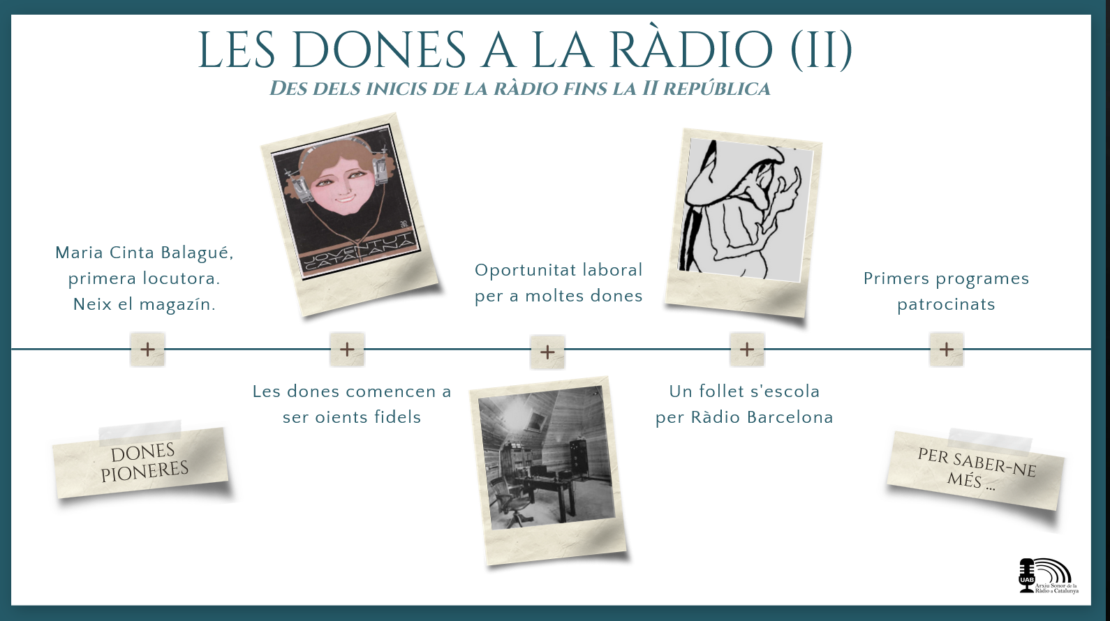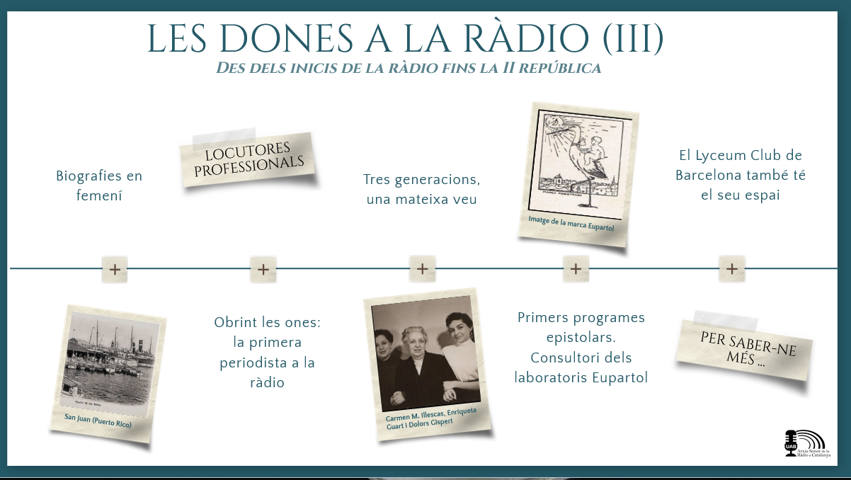 Col·laboradors i fonts sonores principals: José Raúl Laborda, Centre d'Iniciatives i d'Experimentació per a Joves, L'altra ràdio de Ràdio 4, Les veus dels pobles, Fernando Rodríguez Calvo, Barcelona es radio / Una vida de radio d'Albert Malla, Pitu Martínez, Esteve Llop Bassiner (L'hemeroteca de la ràdio), Juan Manuel Silvestre (Solo Jingles Radio), Francesc Gallardo, sèrie Crònica Sentimental de Ràdio Barcelona (1994), El sonido de la historia (2012-2013) de Radio 5 Todo Noticias (RNE), Dies de ràdiode Catalunya Ràdio, La ràdio que vam sentir (2000-2004), de Ràdio Barcelona, arxiu sonor de Joan Munsó Cabús, arxiu sonor de Josep Maria Francino, Paco Vera Saz "Pacman" (Radiochips), Iu Forn, fonoteca de Mario Azañedo, Guillermo Orduna, Banc de Veus del projecte Dones a les ones de l'Associació de Dones Periodistes de Catalunya, Jordi Brunet, Pilar Sampietro, família Solà Anadón, Sergi Huete, Josep Lluís González, Audios para recordar, de Radio 5, Joyas del archivo sonoro, de RNE Audio.