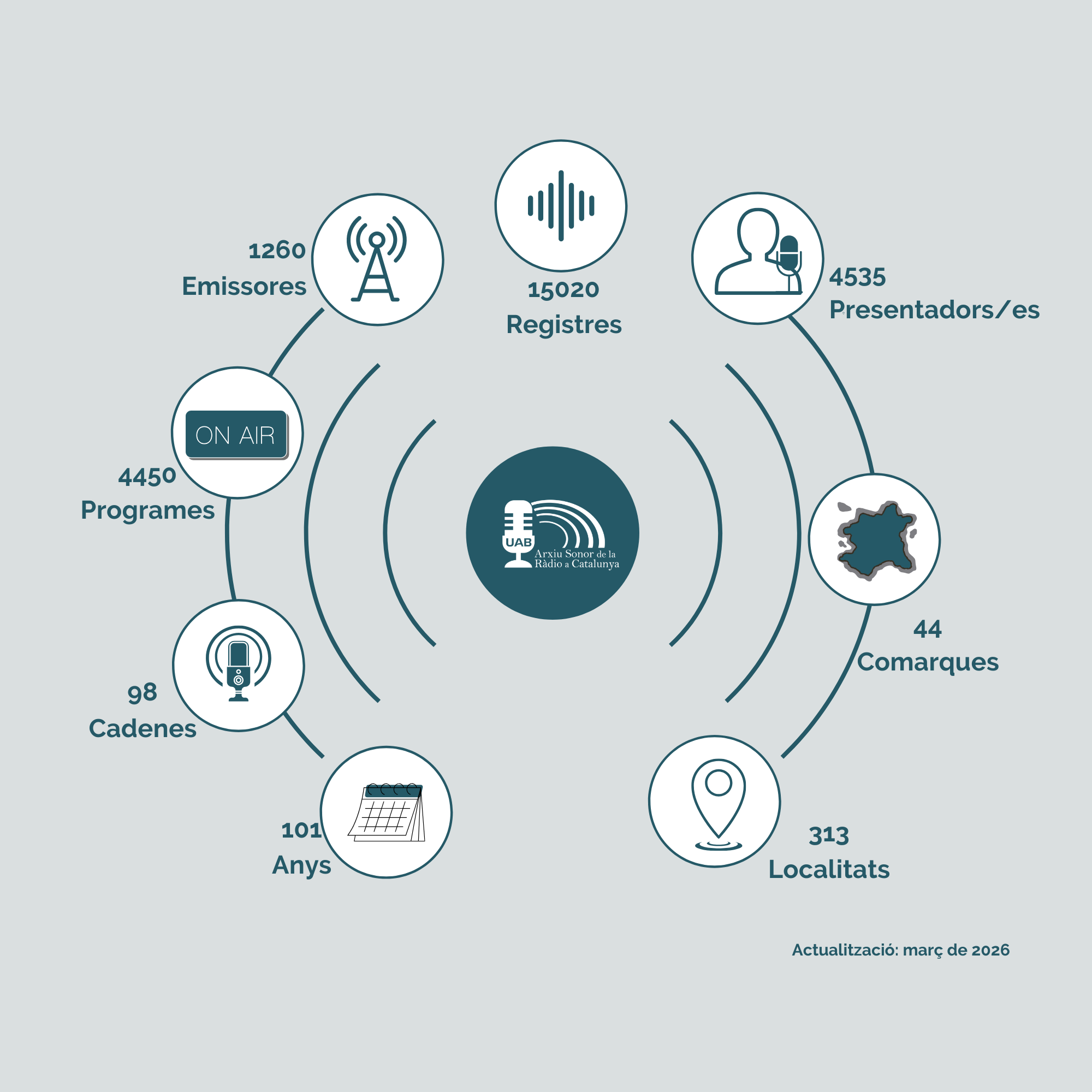 L’Arxiu Sonor de la Ràdio a Catalunya de la Universitat Autònoma de Barcelona (ASRC-UAB) recull una mostra d’emissores catalanes i espanyoles presents a les bandes de radiodifusió a Catalunya i de les ràdios catalanes que distribueixen els seus continguts per Internet.